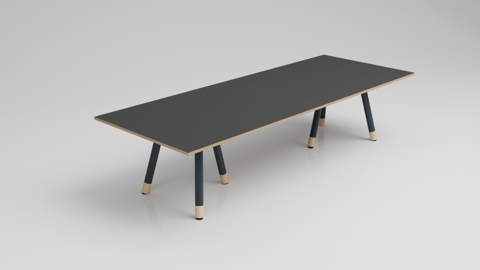 Distinguished meeting tables featuring solid wood accents on the legs.