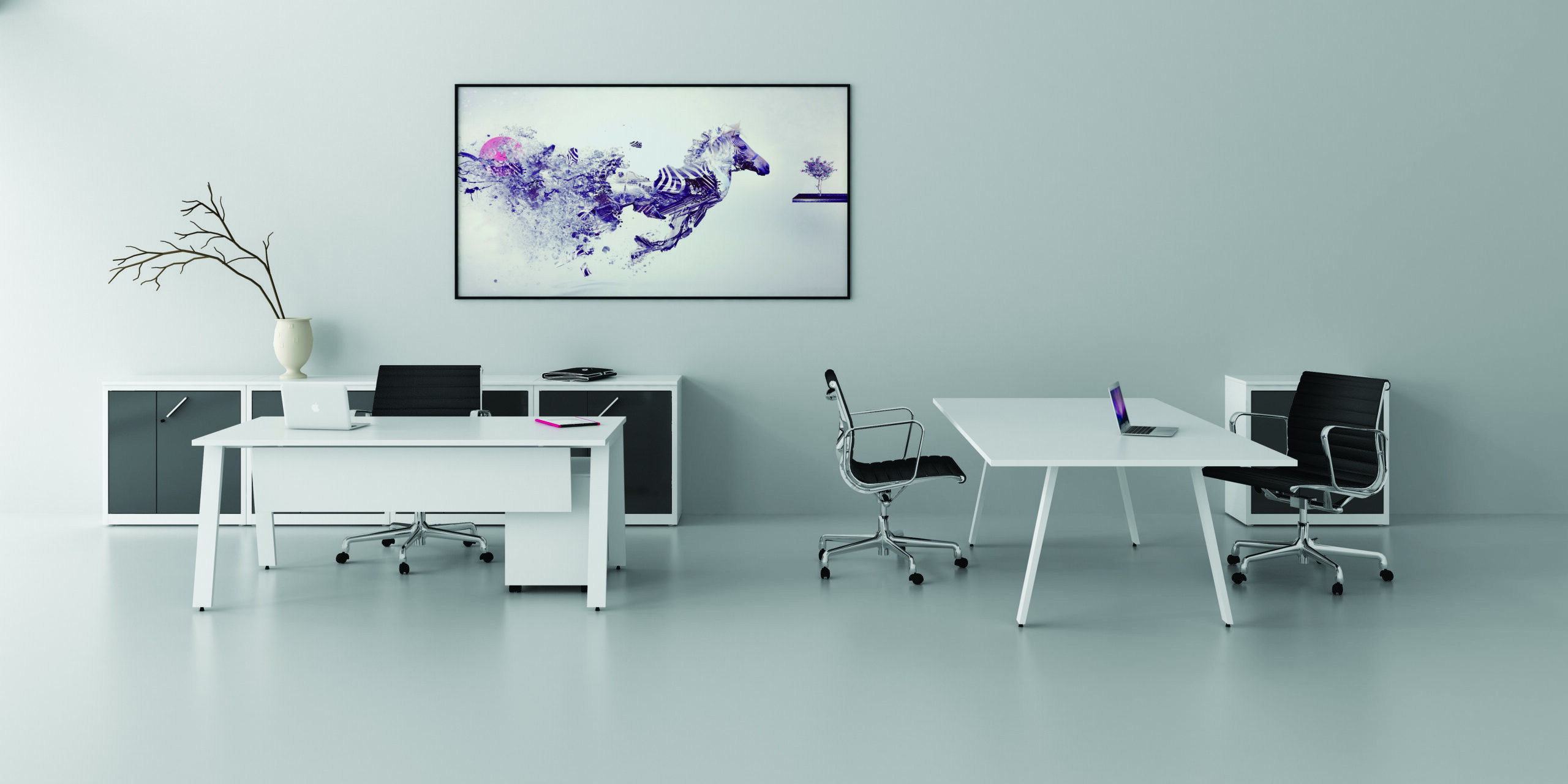 A sua versatilidade facilita a adaptação a diversos contextos, garantindo uma solução visualmente coerente e funcional em todo o local de trabalho.